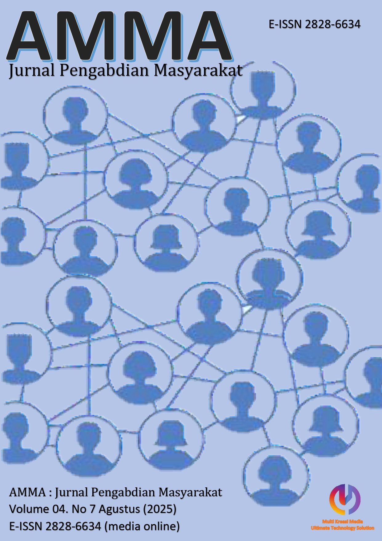 Vol. 4 No. 7 : Agustus (2025)AMMA : Jurnal Pengabdian Masyarakat untuk scope Multidisiplin Ilmu. Dengan No. ISSN 2828-6634 (Media Online). Terbit 12 kali dalam setahun dengan scope keilmuan seperti :